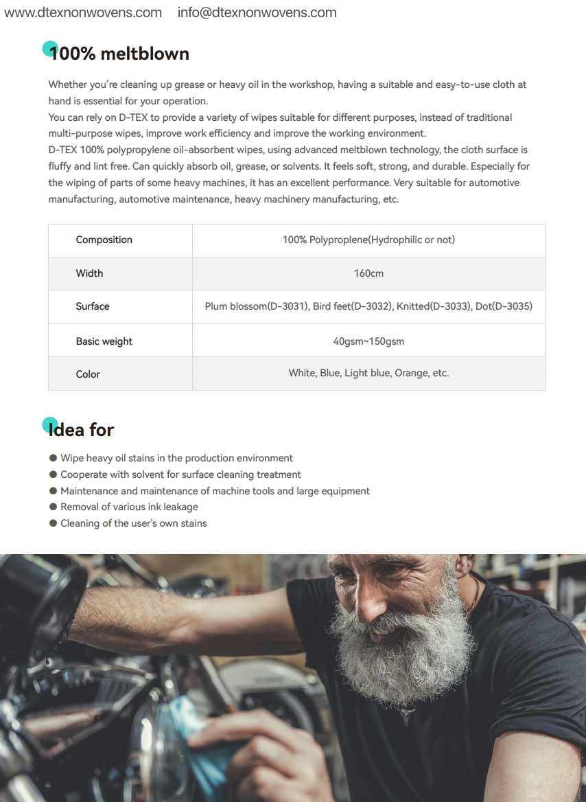 D-TEX Abrasive Meltblown Nonwoven Wipes are engineered for superior cleaning performance in demanding industrial environments. Made from